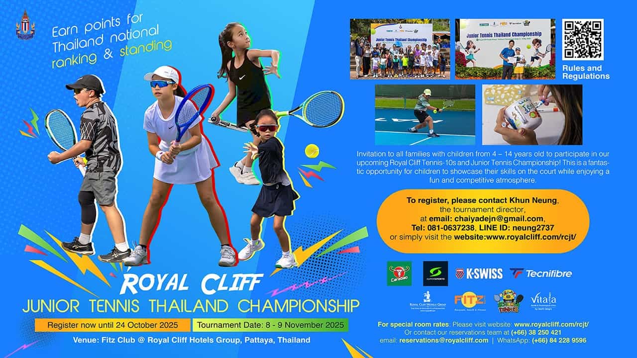 Invitation to Tennis lovers for The 4th Edition of the Royal Cliff Junior Tennis Thailand Championship